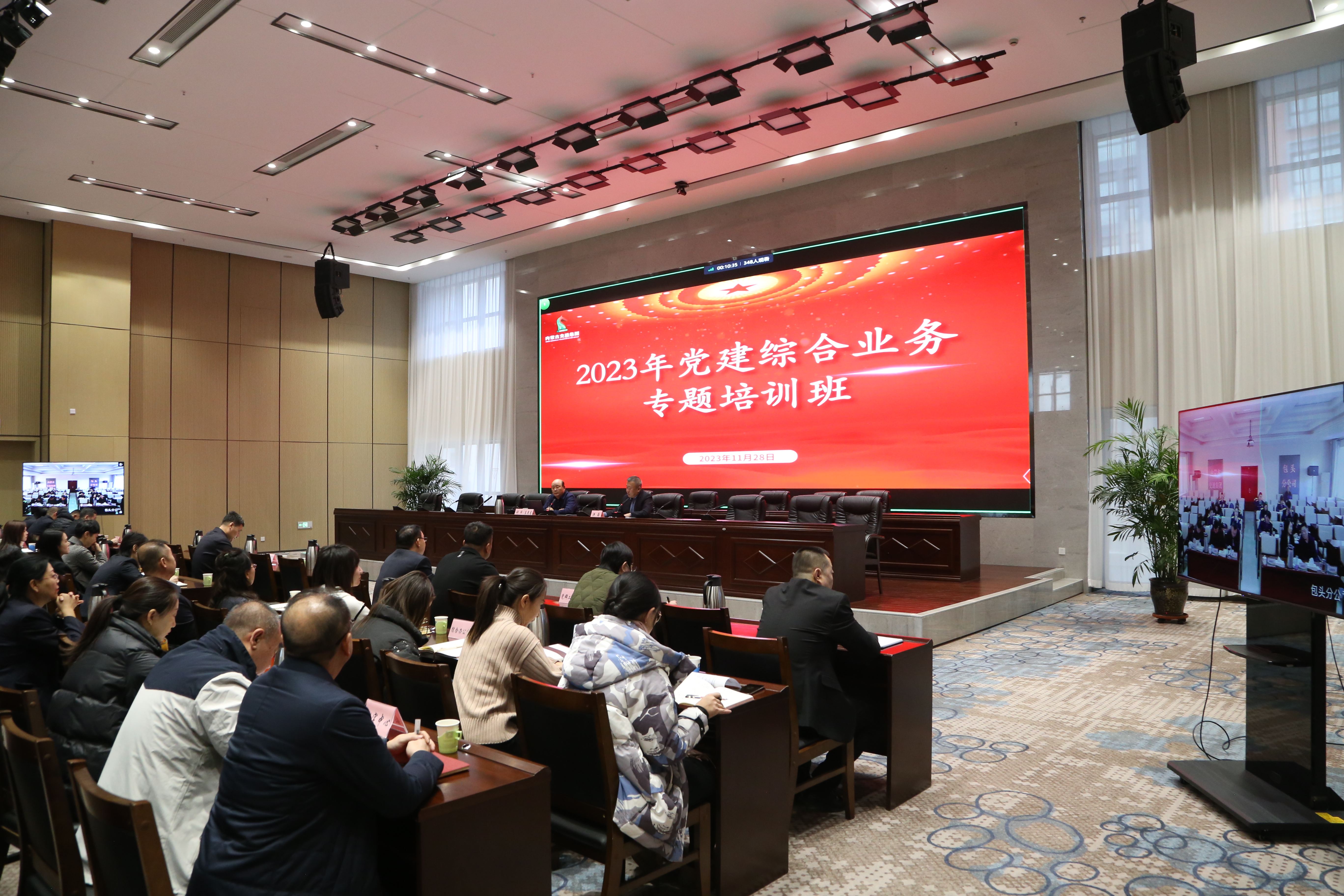 集团党委班子成员、集团领导、各部室(中心)及驻呼分子公司党组织负责人及党务工作人员在主会场参加学习;各区域分公司干部职工在视频分会场参加学习。