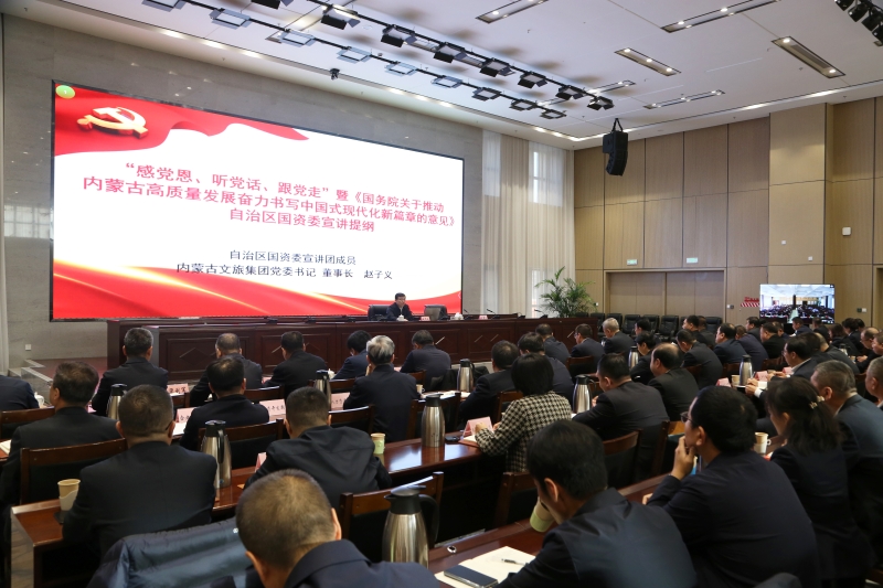 12月8日,自治区国资委党委“感党恩、听党话、跟党走”暨《国务院关于推动内蒙古高质量发展奋力书写中国式现代化新篇章的意见》宣讲团成员,内蒙古文化旅游投资集团有限公司党委书记、董事长赵子义深入99ri视频在线观看国产进行专题宣讲。99ri视频在线观看国产党委书记、董事长张翔主持并讲话。