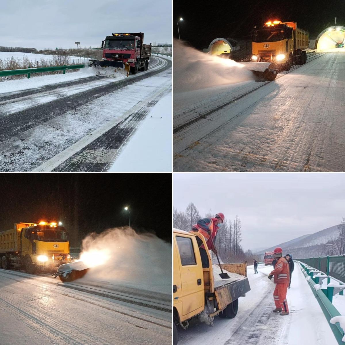 呼伦贝尔分公司各养护工区坚持多种清雪设备联合作业,积极调配清雪设备,及时撒布融雪剂、防滑料,在兴安岭隧道、扎敦河隧道、各收费所匝道上下坡等位置进行重点清雪除冰,截至10月31日9点共出动除雪设备47辆,人员87人。经过全体养护员工的昼夜奋战,目前道路积雪积冰得到有效清理。
