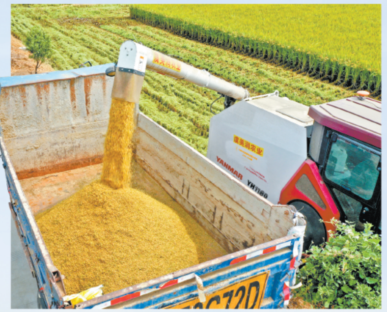 本报讯(融媒记者冯碧珩)9月13日中午时分,常福街道虞美润农业专业合作社的早稻田间,收割机的轰鸣声打破了秋日的宁静。金黄色的稻浪中,两台联合收割机正开足马力来回穿梭,抢收今秋第一批“国庆稻”。