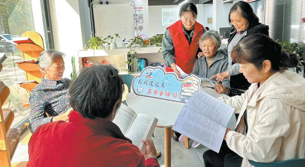 日前,虞山街道梅园社区开展“书香润民心阅读伴我行”银发阅读活动。长者们围坐一堂,在志愿者的带领下一起品读诗词和养生典籍,在书香中感受传统文化的魅力,享受阅读的乐趣。