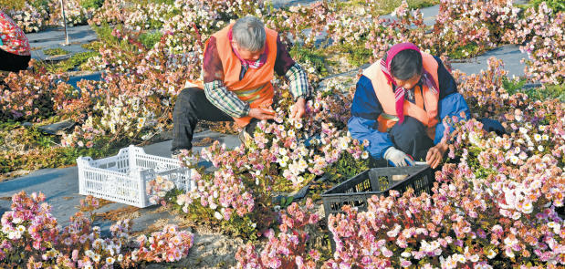 日前,支塘镇窑镇村首次试种的药用杭白菊与金丝皇菊进入采收期,有望优化当地农业结构,拓宽村民增收渠道。