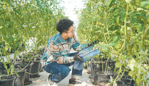 日前,常熟国家农业科技园区南大(常熟)研究院有限公司的工作人员正在采摘达到最佳成熟度的小番茄,准备供应市场。