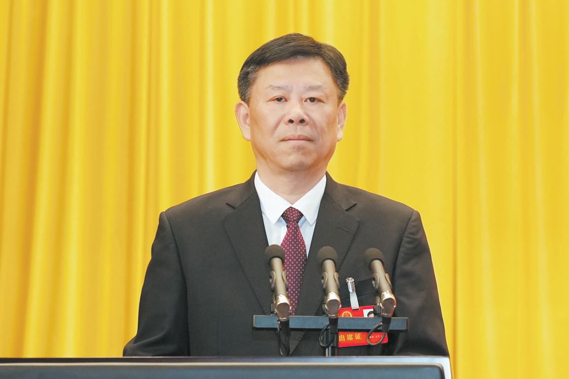 市人大常委会主任王建国向大会作工作报告。融媒记者李献摄