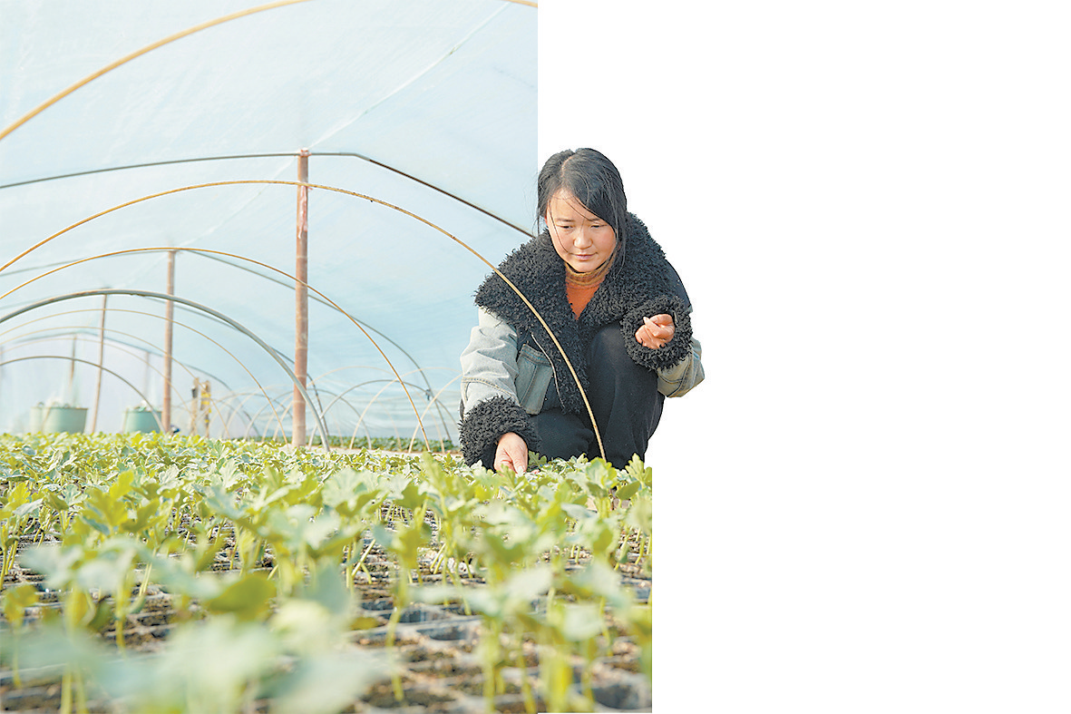 1月21日上午近10时,在位于尚湖镇的绿禾果业基地的西瓜种植区,负责人何锦淑小心地将棚膜掀开一角,钻进棚中。在大棚中间位置,她掀开了第三、第四层覆膜,让西瓜苗透透气。这些西瓜苗是月初移栽的,目前植株高度已经超过20厘米。在仔细查看瓜叶状态后,她轻舒了一口气,“状态挺好的,没有被冻到。”
