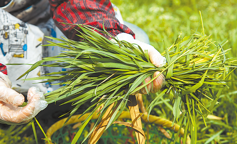 青团的独特滋味来自浆麦草汁,王阿金家用的是自家种的浆麦草。今年冬季气温适宜,浆麦草长势喜人、品质上佳。用这种形似麦草、根茎泛红的植物打出的汁水清香浓郁,是青团翠绿鲜亮、风味独特的关键。店里的自制豆沙馅更是招牌,凭借独家秘方征服了众多食客的味蕾。
