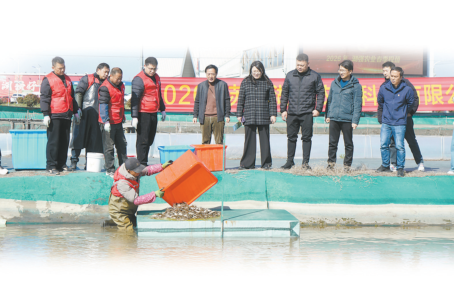 面对去年秋冬气温偏高带来的挑战,湖强农业在市镇两级农技部门的指导下,通过精细化管理,确保了扣蟹生产的稳定高效。近50亩扣蟹池平均亩产可用蟹苗约200公斤,扣蟹规格普遍较大,约合每公斤60至80头,为今年的成蟹养殖打下了坚实基础。公司总经理李自强说:“今天天气晴好,气温在10℃以上,非常适合扣蟹投放。从今天起,我们计划用一周时间完成422亩高标准池塘的扣蟹放养工作,随后视天气情况完成160余亩阳澄湖水域的扣蟹投放工作。”