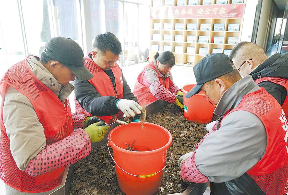 3月10日,位于沙家浜镇的苏州湖强农业科技有限公司湖强基地上一派繁忙景象。工作人员在清晨时分起捕前一日转运至基地暂养池的扣蟹,然后把扣蟹送往挑选车间——在这里,每一只扣蟹都要经过层层筛选,才能获得“通行证”,进入阳澄湖或高标准养殖池塘,开启成长为膏满黄肥的大闸蟹的旅程。