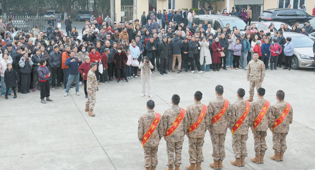 3月15日上午,各界群众、新兵家属齐聚市国防园,欢送入伍新兵,为即将奔赴军营、献身国防的新兵佩戴光荣花,送上殷切期望,共同见证新兵入伍荣耀时刻。