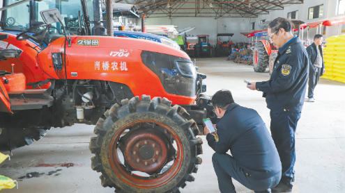 日前,常熟市农业综合行政执法大队工作人员专程来到海虞镇肖桥村农机库,开展农机年检年审工作,帮助农民做好春耕备耕工作,确保各类机械运转正常,消除农机作业安全隐患。