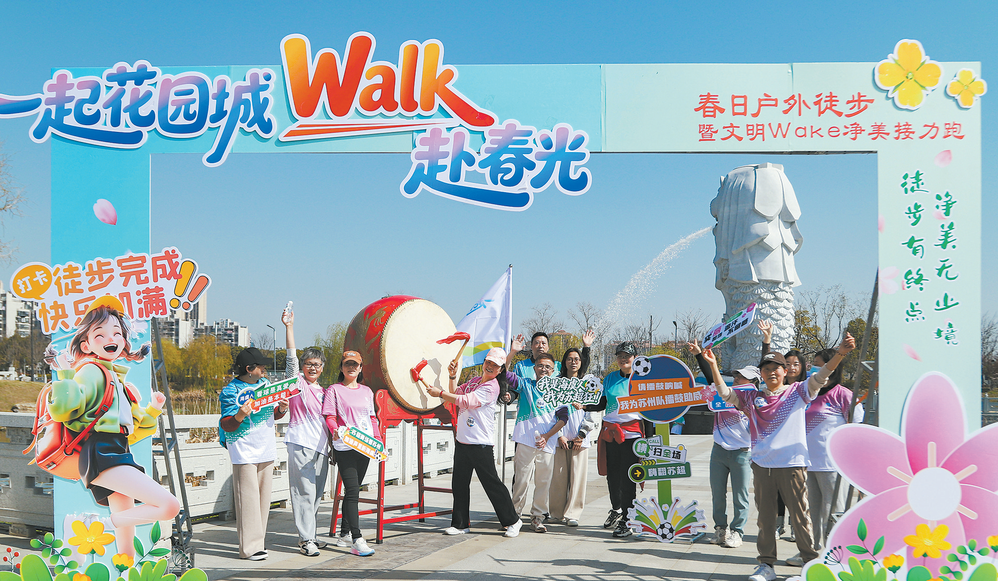 日前,海虞镇举办春日徒步暨净美接力跑,市民在中新海虞花园城中赏景健身,同步开展文明环保行动,并为“苏超”擂鼓助威。