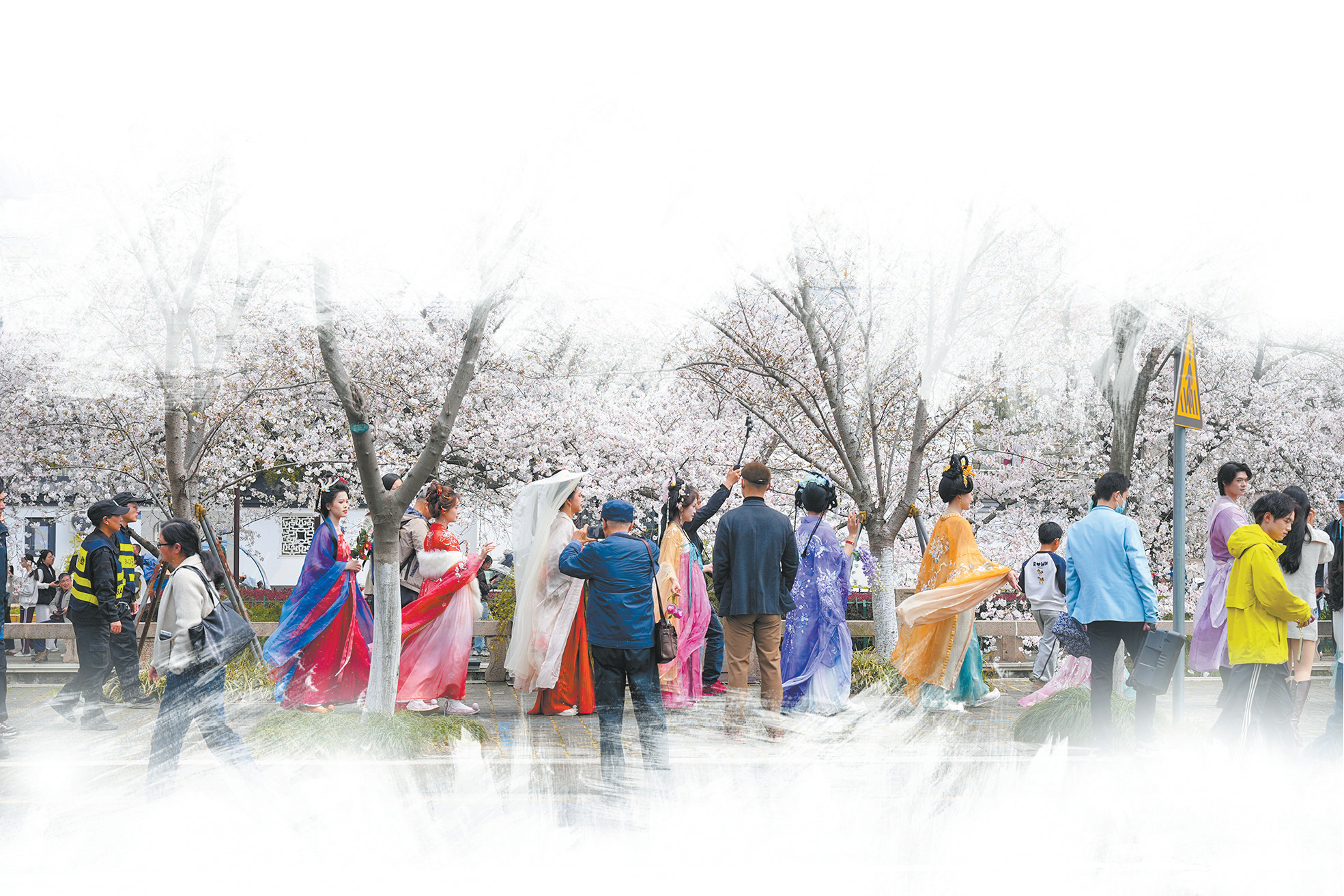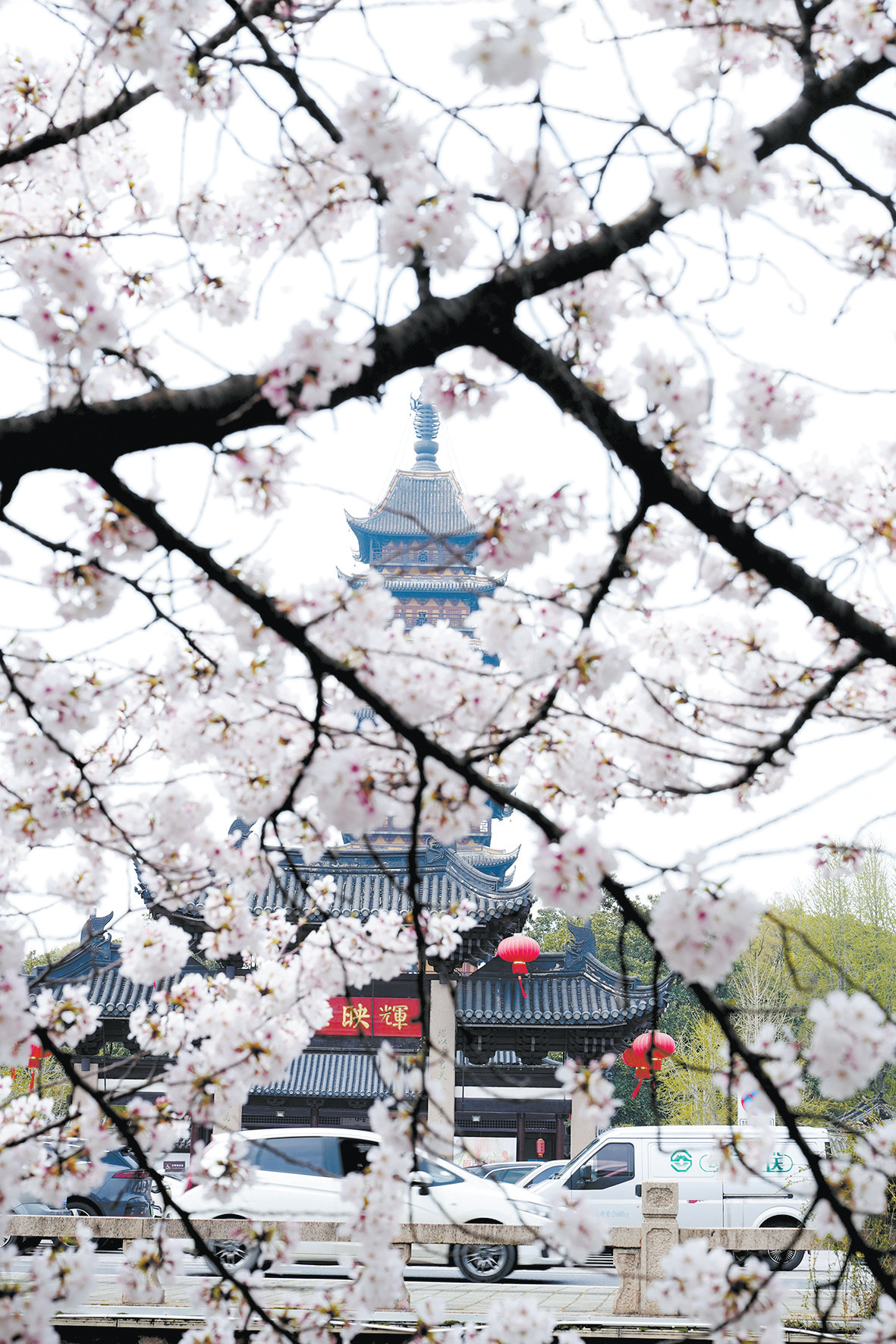 樱花树下,繁花如云。从苏州专程赶来赏花的邓女士与朋友们驻足欣赏精彩的古风表演,不时在烂漫花影间合影留念,定格独属于江南春日的美好瞬间。“常熟的春天繁花似锦,处处是美景。漫步在古城区既能赏樱花烂漫,又能沉浸式感受国风雅韵,让我看到了这座江南古城不一样的风雅与生机。”邓女士感叹。趁着春假,新市民董女士特意带着孩子到护城河畔赏樱游玩。花海中,一家人漫步打卡、乐享春光,沉浸式感受古城常熟的春日浪漫与人文雅韵。“每年春天我们都会来这里赏樱,今年正好赶上春假,带孩子出来亲近大自然、感受春日的美好,同时体验常熟的古韵今风,特别开心。”董女士说。