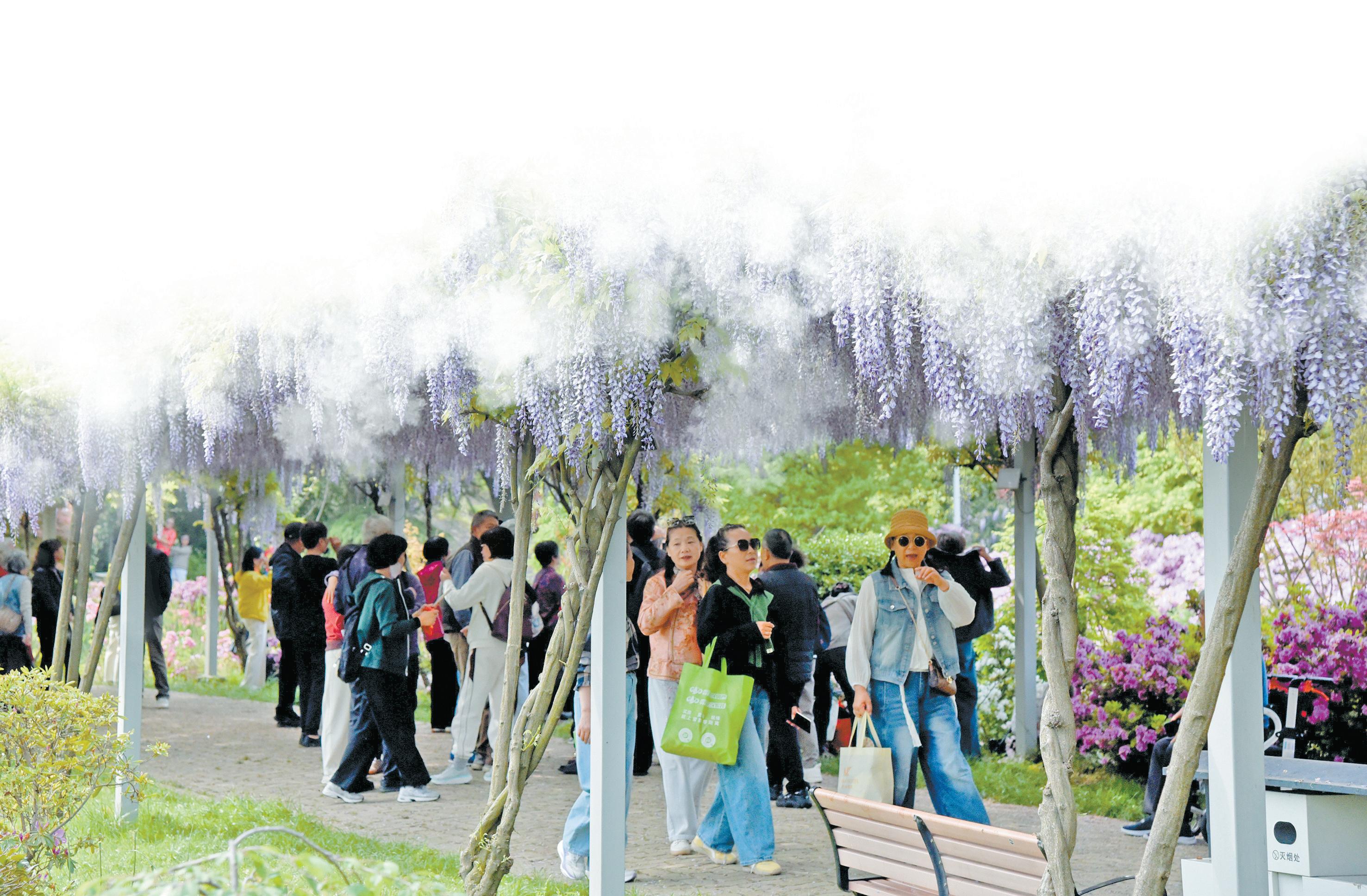 退休市民袁女士几年前曾带孩子到紫藤园赏花,此次重游感慨万千,“现在规划得更好,更漂亮了。这里环境优美、空气清新,在这里享受春日的馈赠,身心愉悦。”不少游客也表示,紫藤园里紫藤品种丰富、景观精致、布局合理,无论在里面休闲散步还是摄影打卡,都十分惬意。