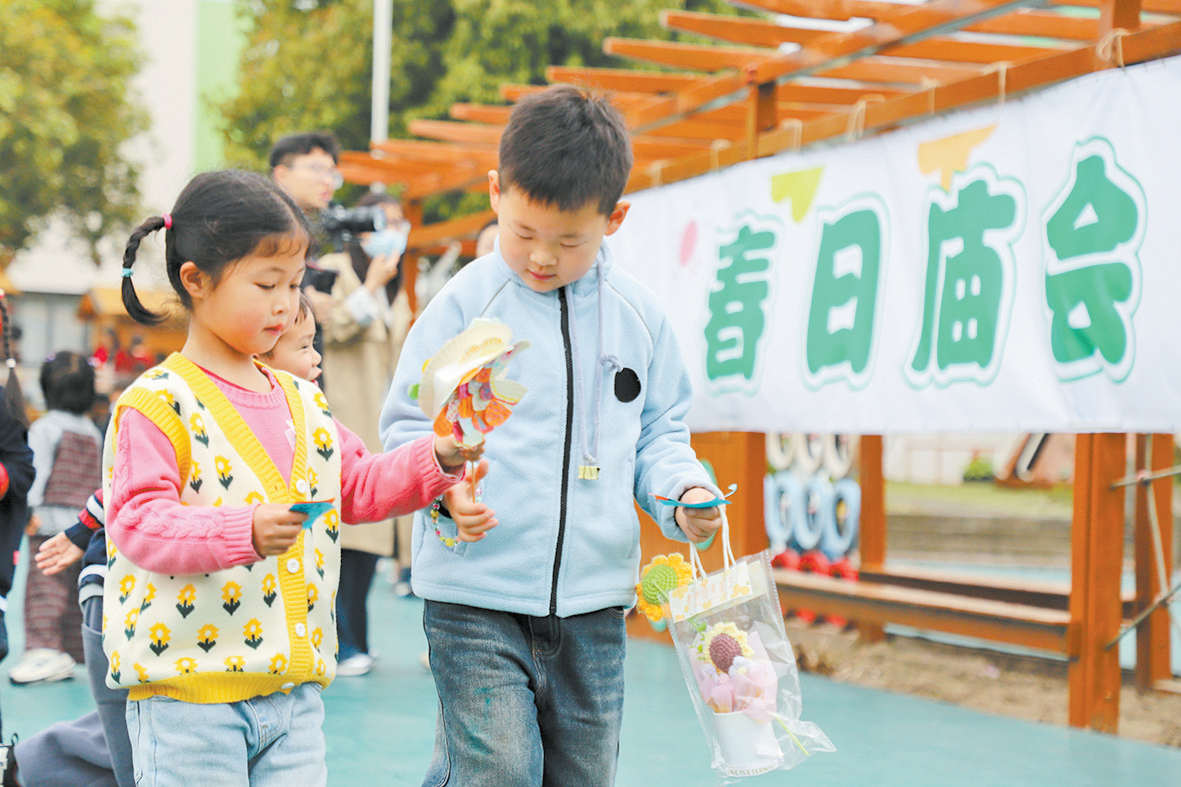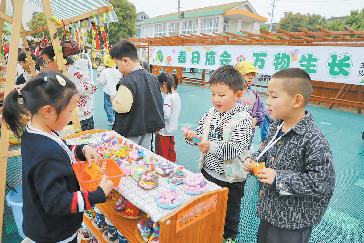 “庙会”上,“大带小”的暖心画面随处可见。大班的孩子主动牵起小班同伴的手,耐心教授手工制作、陪伴挑选好物、携手参与游戏,用小小的担当呵护年幼的伙伴。“这次活动复刻农历三月二十八的传统福山庙会,将本土非遗技艺、民俗文化融入课堂,是我园新农村印象特色课程的生动实践。”福山幼儿园园长褚轶雯表示,这是幼儿园第二年举办混龄社会实践游戏。活动在寓教于乐中提升了孩子们的沟通能力与自信心,让孩子们在感受传统文化魅力和乡村发展变化的同时实现了快乐自主、自然成长,深受喜爱。
