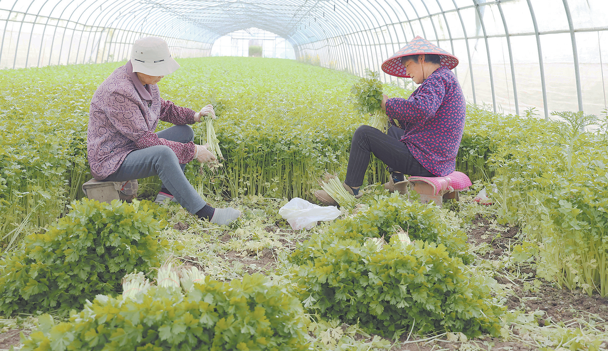 日前,古里镇康博村的蔬菜大棚里,菜农正在采收芹菜,准备供应市场,充实市民“菜篮子”。