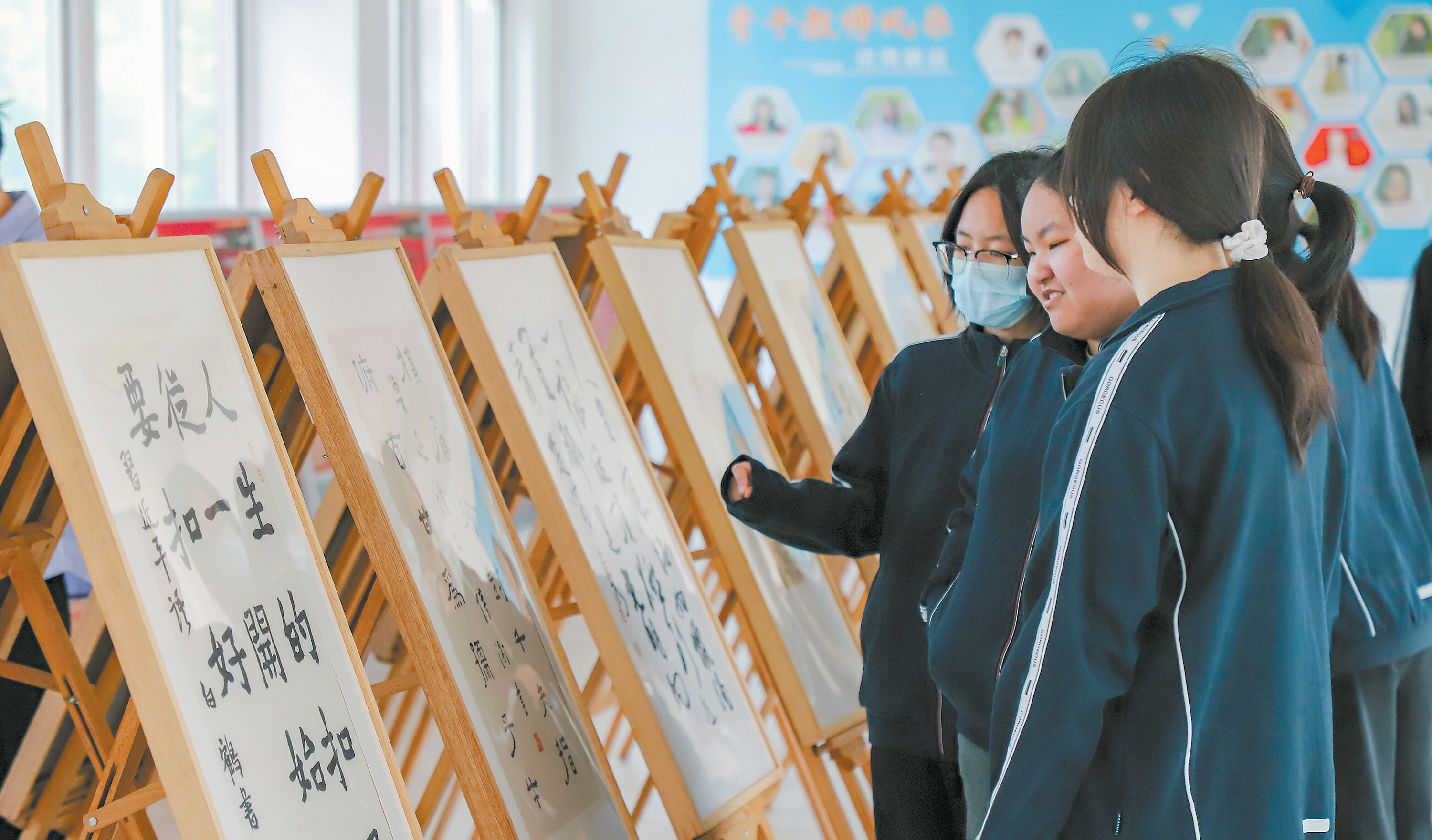 4月16日,省“书法大篷车”开进海虞高级中学,近百幅优秀书法作品同场亮相,让学生近距离感受了中华优秀传统文化的魅力。