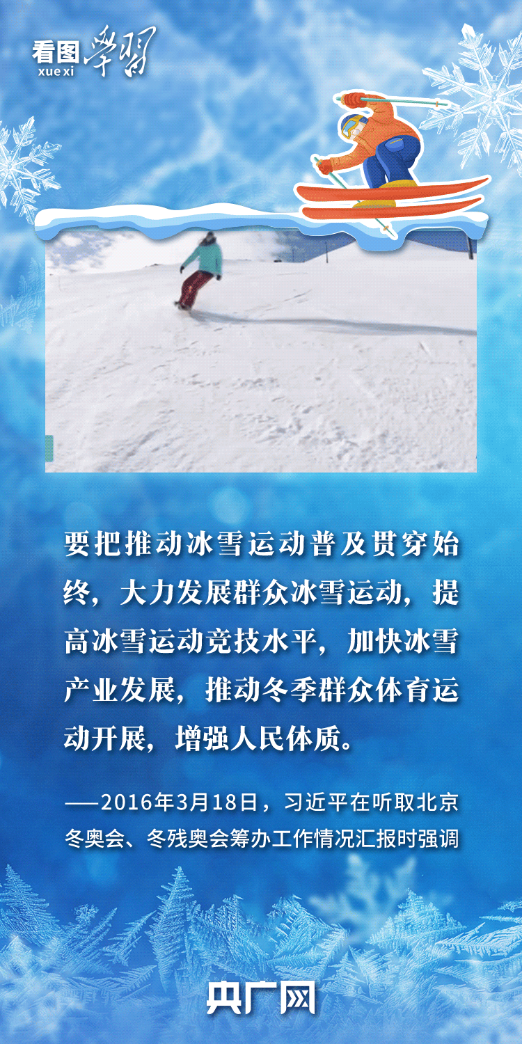 “人生幸福快乐,强身健体十分重要。”一直以来,习近平总书记高度重视我国冰雪运动发展,强调要大力发展群众冰雪运动,提高冰雪运动竞技水平,加快冰雪产业发展,推动冬季群众体育运动开展,增强人民体质。