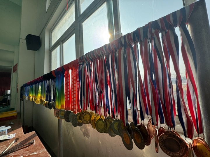 “这些挂出来的,只是一部分。”印建刚说,省级以上比赛的重要奖牌和证书都被单独收纳起来,装了整整两大纸箱,仅证书就有几百份。“一是地方放不下,二是怕孩子们弄坏。”