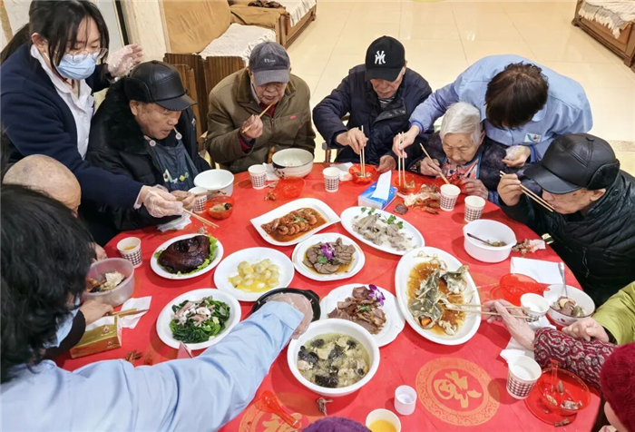 获评2025年度“江苏省旅居养老地”的滨湖区蓝天养老院是一所医养结合型的养老院,目前入住老人近300名。蓝天养老院行政院长温凯告诉记者,往年也有家属来院里和老人一起吃年夜饭,但像今年这么多老人家属加入的,还是头一次。为了让留院老人既能实现新春团圆,也方便家属探望,养老院特意推出蓝天团圆宴、爱心助餐等服务,用贴心举措接住了这份新的团圆需求。