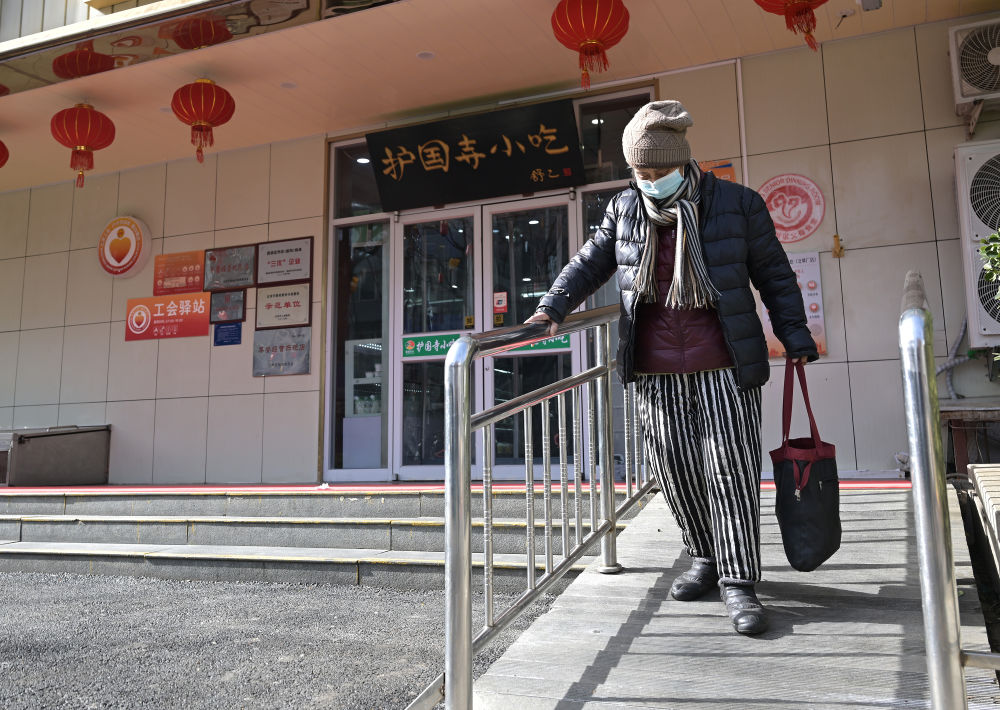 73岁的社区居民走在专为老年人和行动不便者设置的缓步斜坡步道上(2月10日摄)。