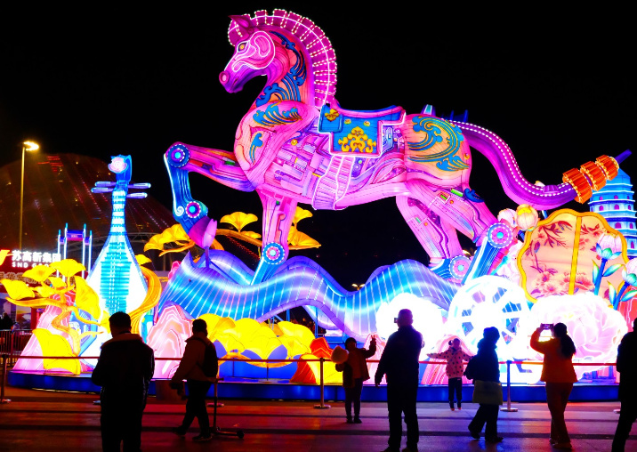 科技融合成为江苏马年造型的一大亮点,各地以光影赋能,打造沉浸式的打卡体验,让传统年味碰撞现代科技。