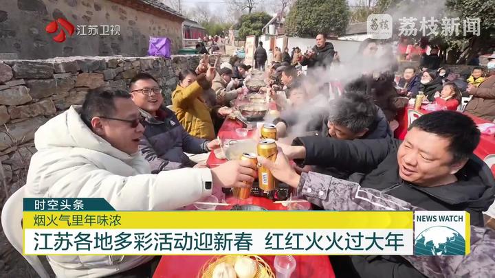 在江苏多地,红火的“村晚”也把年味送到了家门口。在盐城阜宁,村民自编自导自演的“村晚”,为大伙献上了一道年味浓郁、乡情满满的“文化大餐”。在无锡江阴长江村,连续举办12年的“村晚”再次如期而至,台上,形式多样的节目喜气洋洋;台下,大家围坐一堂,话家常、叙乡情,其乐融融。