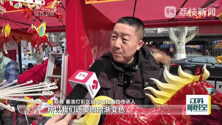 秦淮灯彩区级非遗代表性传承人郑峰说:“今天早上已经卖了几十个花灯。现在的工艺比原来复杂多了,像花灯的有些地方现在流行渐变色,所以我们还要喷绘渐变色。马的形态是奔跑的形态,寓意着马到成功。”