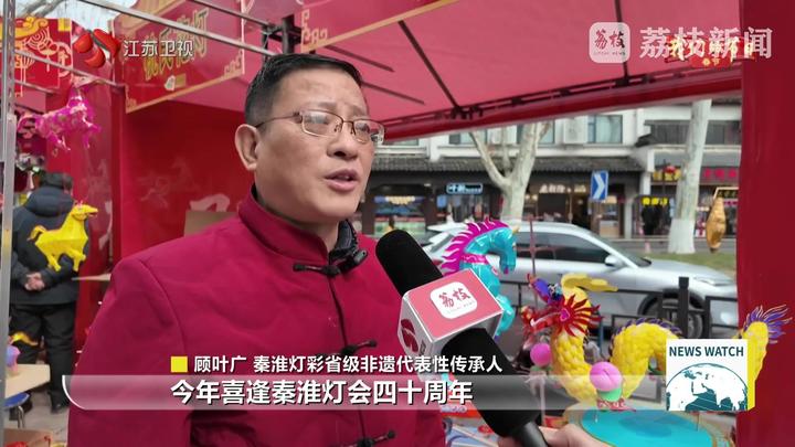 荔枝新闻中心记者沈一秀说:“逛夫子庙,买盏花灯,是老南京人过年不变的习俗。大年初一的一大早,夫子庙整个景区已经是喜气洋洋。不少市民游客逛灯市、选购花灯,在浓浓的非遗年味里,开启马年新春。”