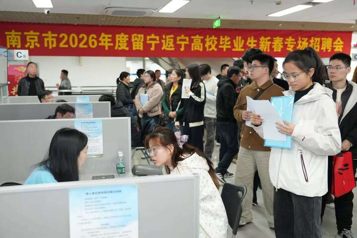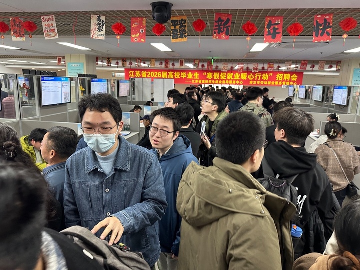 交汇点讯 2月22日(正月初六)下午,南京新春首场人才招聘会——2026年度“春风行动”留宁返宁高校毕业生专场招聘活动火爆开场。2000个岗位吸引了1200多名高校毕业生进场求职,收到简历近2500份,让主办方和招聘企业连呼“没想到”。