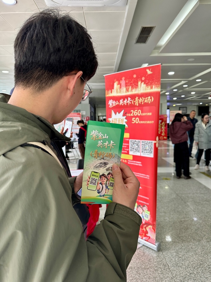 南京财经大学旅游管理硕士研究生胡婷婷老家在安徽芜湖,这两天也是和父母在南京游玩。碰到小胡时,她已经从招聘会现场挤了出来,“投了一个培训的岗位,跟招聘经理谈得蛮投缘,约好开学后面试。”在现场工作人员的推荐下,胡婷婷注册了南京今年为青年人才特别推出的“紫金山英才卡(青柠码)”。“可以免费乘公交地铁,游览热门景区,这个码对我接下来做毕业论文和实地调查都很有用。”