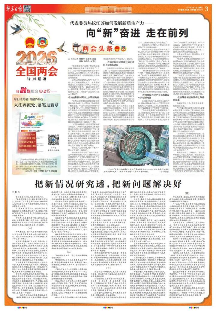 “要在研究新情况、解决新问题上下功夫、出经验。”习近平总书记参加十四届全国人大四次会议江苏代表团审议时,对经济大省提出殷切期望。