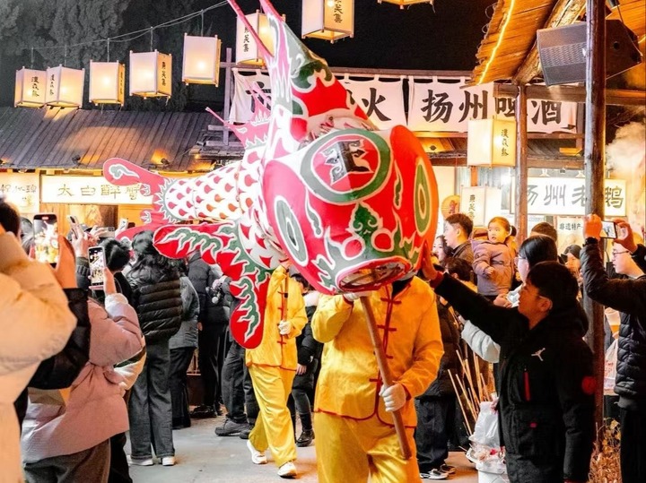 连云港、泰州、扬州等地将民俗文化与老字号消费深度绑定,让年味更有内涵。连云港活动现场张灯结彩,舞狮、戏曲等民俗表演轮番上演,汪恕有滴醋、小上海等老字号现场售卖经典年货,非遗传承人现场展示传统技艺,还原记忆中的“年味儿”;泰州市举办非遗美食仁和楼大饼启市仪式、马“稻”成功非遗迎春等活动,让传统技艺与节日氛围深度融合,“苏湘有味永泰同行直播秀”实现了品牌展示与文化传播的双重效果;扬州市依托宋夹城元宵灯会、古籍刻印社非遗文创市集,让谢馥春、冶春等老字号融入文旅场景,“来扬州过年,不仅能逛瘦西湖,还能买到谢馥春的护肤品、冶春的点心,收获满满。”来自安徽的游客许女士说道。