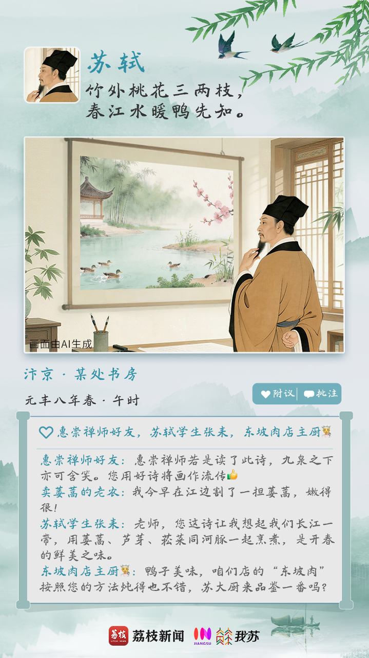 假如古人们也喜欢发朋友圈,这江南的春色定会展现出别样的诗情画意。春景无限,滋味万千。古人的春天里又藏着多少种思绪?今天,穿越古今,用AI将诗句具象化,在八位文坛大V的“朋友圈”里,感受一番他们笔下各不相同的春日心境。
