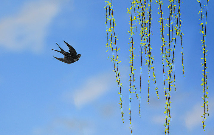 一候玄鸟至:玄鸟,即燕子。春分回暖,江水回温,燕子收到春天的召唤归来,带来了春暖百花开,带来了春风绿两岸。