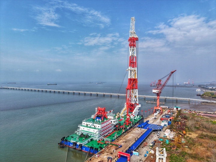 据悉,该船由中国铁建大桥局投资建造,总长130.5米,宽40.8米,型深8.4米,桩架高度156米,可打直径7米、桩重700吨的桩基,作业水深最深达70米,是目前世界上桩架最高、吊桩能力最大、作业水深最深的打桩船,标志着我国在复杂海洋环境下实施大型、超深、高精度桩基施工的核心装备能力迈上新台阶。