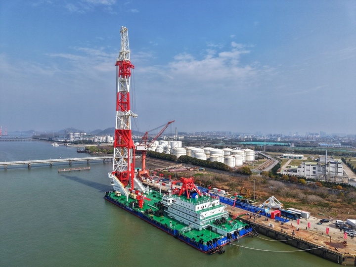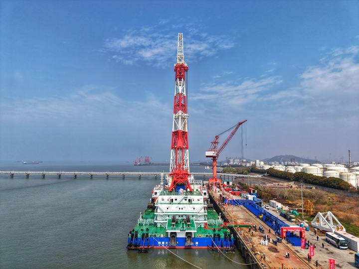 值得一提的是,“铁建大桥桩1”号的核心部件——全球最大启闭液压油缸于今年1月刚刚在常州下线。该油缸缸径达1.6米,活塞行程21米,完全伸出后总长度接近50米、约17层楼高,额定推力达5000吨,相当于一次性可举起3500辆家用轿车,油缸重量、直径、长度、推力均为全球第一,从设计到制造实现完全自主可控。特别是其构建的船舶智能施工定位体系,实现了厘米级定位,可助力打桩船以世界最高精度完成精准泊船打桩。
