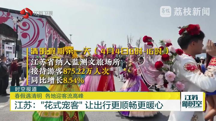 记者从江苏省文化和旅游厅了解到,清明假期第一天,江苏省纳入监测的文旅场所共接待游客875.22万人次,同比增长8.54%。热门旅游城市,南京游客量同比增长近3成。为应对大客流,交通等部门提前部署,通过无人机巡查、路况直播等措施实时引导车流,尽最大可能保障路网通畅。除了“硬保障”,景区周边的一系列贴心举措,更是将江苏的“宠客”诚意拉满。公安交管部门坚守岗位,主动向游客发送出行指引短信,用VR云上导览链接等方式,“手把手”帮助不熟悉路况的游客快速找到目的地。