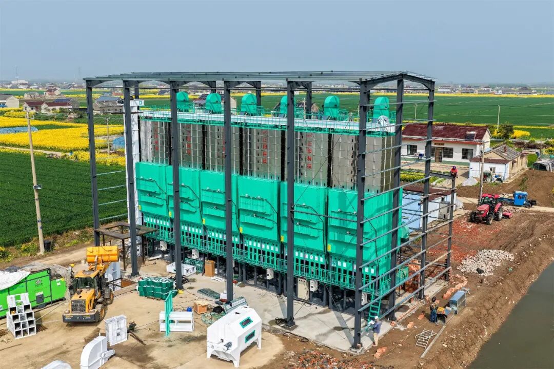 在做好自身生产的基础上,炳军家庭农场积极发挥辐射带动作用,常年为周边种植大户提供育秧、机插秧、病虫害防治等配套服务,年服务面积达8万亩次。为提升粮食产后处理能力,农场于今年3月初投入约180万元,新建6组粮食烘干设备。