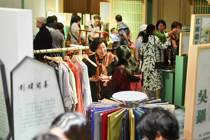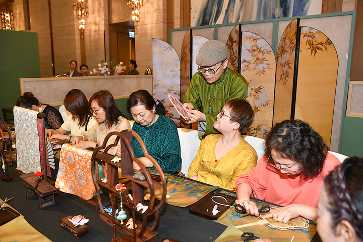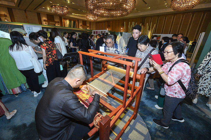香港青年吴国禧身着一件融合吴罗织造、香云纱制作与香港中式长衫制作三项国家级非遗技艺的长衫现身现场,引来众多关注。他坦言,三年前团队曾赴苏州取经,从当地非遗保育与产业化实践中获得启发,此次不仅带来跨非遗合作的创新成果,还当场“下单”苏绣作品。“这样的聚会,其价值远不止于展示精美卓越的作品,更在于凝聚不同社群、观点与机构,为未来的合作与共同愿景开启新的可能。”香港理工大学时装及纺织学院院长Erin Cho(赵艾琳)在观展后感慨地说。