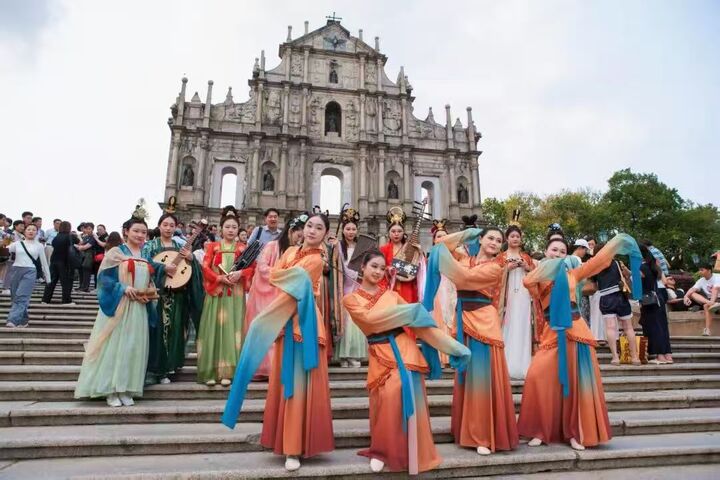 而在澳门,徐州汉文化展演团队不仅在大三巴牌坊等地标开展汉乐汉舞快闪,更走进当地学校和社区,与学生、市民面对面互动。这种“从舞台到课堂”的互动,让传统文化走出剧场、走进日常,在润物无声中消融了文化隔阂,增进了港澳同胞尤其是青少年一代对中华文化的认同。