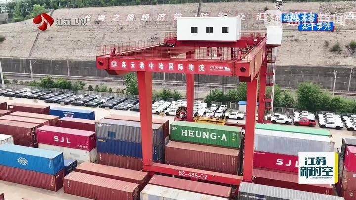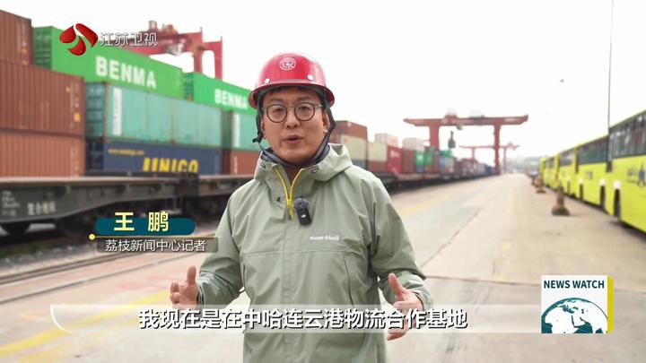 荔枝新闻中心记者王鹏说:“我现在是在中哈连云港物流合作基地。一批满载汽车零配件的集装箱正在快速装车,即将搭乘中欧班列发往乌兹别克斯坦。”