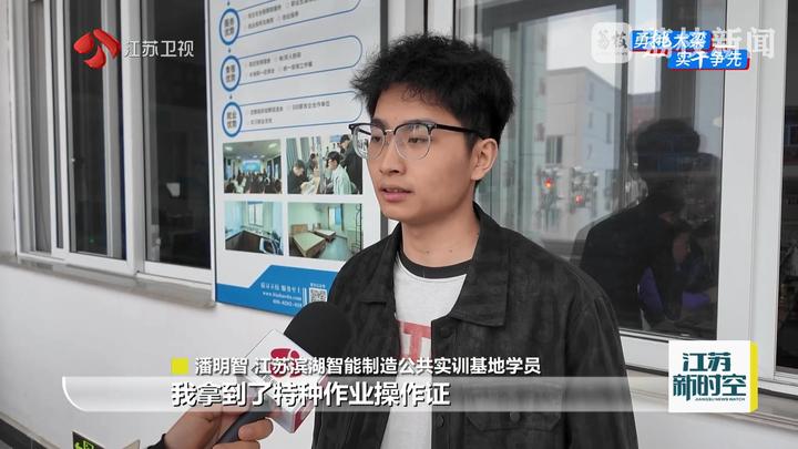 江苏滨湖智能制造公共实训基地学员潘明智说:“经过四个月的技能培训,我拿到了特种作业操作证和电气工程师证书,面试进入一家外企,现在薪资一个月差不多8000元。”